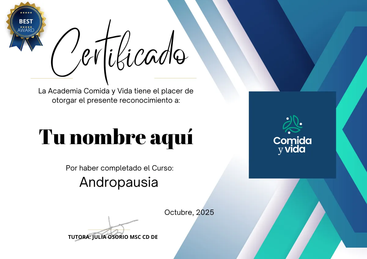 📝 Al finalizar, recibirás un Diploma digital de reconocimiento, avalado por Comida y Vida.